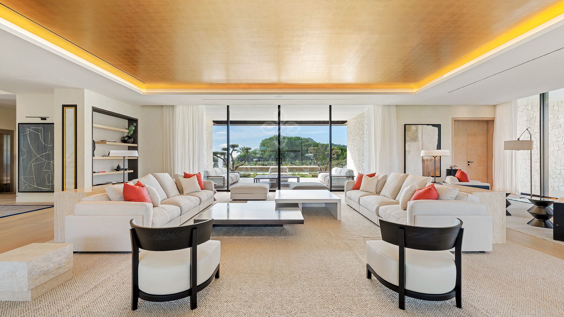 Planned for both everyday living and entertaining, the villa features generous living areas and private bedroom suites, all fully furnished. Guest accommodation and amenities dedicated to wellbeing and leisure include a heated and covered outdoor pool, gym, hammam, and massage room. A lift connects all levels, ensuring convenience throughout.